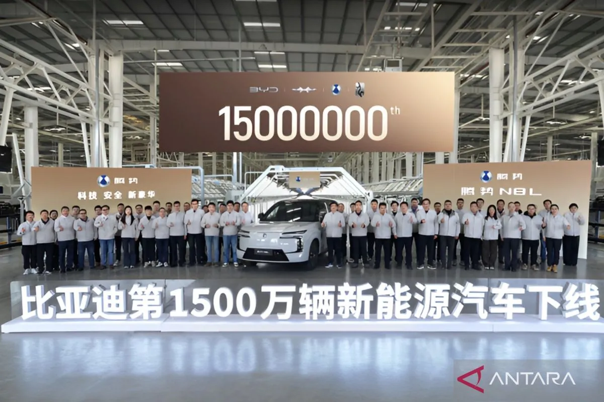 Jakarta (ANTARA) - BYD mengumumkan telah memproduksi kendaraan energi baru (NEV) sebanyak 15 juta unit menandai produksi kumulatif kendaraan listrik murni (BEV) dan kendaraan listrik plug-in hybrid (PHEV) di seluruh jajaran mereknya.