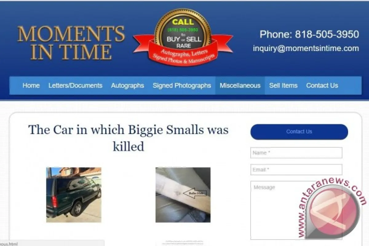 Laman Moments In Time, yang menawarkan mobil GMC Suburban 1997 yang ditumpangi rapper Notorious B.I.G saat ia ditembak hingga tewas, 9 Maret 1997 silam. (momentsintime.com)