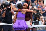 Petenis Jepang Osaka Naomi menyapa penonton seusai pertandingan putaran keempat tunggal putri melawan petenis Amerika Serikat Coco Gauff pada Kejuaraan Tenis AS Terbuka 2025 di New York, Amerika Serikat, Selasa (2/9/2025). Coco Gauff yang merupakan petenis peringkat 3 dunia tersebut kalah dari petenis peringkat 23 Osaka Naomi dengan skor 3-6, 2-6. ANTARA FOTO/Xinhua/Li Rui/nym.