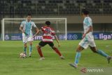 Pesepak bola Madura United Lulinha (kedua kanan) melewati adangan pesepak bola PSBS Biak Luquinhas (kiri) pada laga BRI Super League 2025-26 di Stadion Maguwoharjo, Sleman, D.I Yogyakarta, Kamis (25/9/2025). Pertandingan berakhir seri dengan skor imbang 0-0. ANTARA FOTO/Andreas Fitri Atmoko/nz