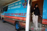 Tenaga medis memeriksa gigi pasien di dalam mobil klinik kesehatan Lembaga Kedokteran Gigi (Ladokgi) TNI AL Yos Sudarso di Makassar, Sulawesi Selatan, Kamis (16/10/2025). Mobil klinik milik Rumah Sakit Gigi dan Mulut (RSGM) Ladokgi TNI AL Yos Sudarso itu digunakan untuk melayani pasien dengan kasus ringan seperti pencabutan, penambalan, serta pemeriksaan karang gigi yang dapat dipesan melalui aplikasi JKN dan diutamakan bagi lansia dengan keterbatasan akses dan mobilitas. ANTARA FOTO/Hasrul Said/tom.