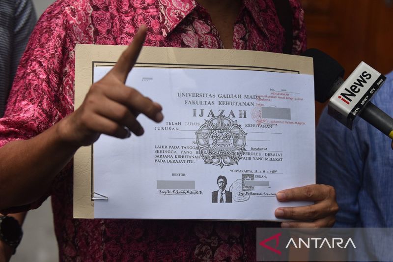 Pengamat Kebijakan Publik Bonatua Silalahi memperlihatkan salinan foto copy ijazah presiden ke-7 RI Joko Widodo yang dilegalisir ketika mendaftar sebagai capres pada Pemilu 2014 di Komisi Pemilihan Umum (KPU), Jakarta, Jumat (24/10/2025). Menurut Roy Suryo terdapat beberapa kejanggalan pada salinan ijazah tersebut dan akan menyandingkan dengan salinan ijazah pada saat Joko Widodo mendaftar Pilgub Jakarta serta akan menguji keabsahannya di Komisi Indormasi Publik (KIP). ANTARA FOTO/Indrianto Eko Suwarso/rwa.