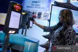 Menteri Koordinator Bidang Infrastruktur dan Pembangunan Kewilayahan Agus Harimurti Yudhoyono (tengah) bersama Gubernur Bank Indonesia Perry Warjiyo (kiri) mencoba QRIS Tap In & Out saat Festival Ekonomi dan Keuangan Digital (FEKDI) x Indonesia Fintech Summit & Expo (IFSE) 2025 di Jakarta, Kamis (30/10/2025). Bank Indonesia meluncurkan QRIS Tap In & Out untuk lima moda transportasi di wilayah Jabodetabek yaitu KRL Commuter Line, Transjakarta, LRT Jakarta, LRT Jabodebek dan MRT guna memudahkan masyarakat melakukan pembayaran digital tanpa perlu memindai kode QR. ANTARA FOTO/Putra M. Akbar/tom.