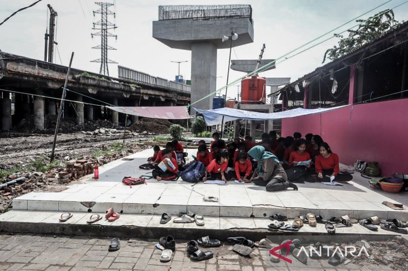 Sejumlah murid belajar di Sekolah Darurat Kartini, Pademangan, Jakarta, Kamis (31/10/2025). Sekolah alternatif yang berdiri sejak tahun 1990 itu merupakan sekolah yang memberikan pendidikan gratis bagi anak dan remaja marginal berusia 4-18 tahun yang berasal dari keluarga tidak mampu. ANTARAFOTO/Muhammad Rizky Febriansyah/tom.