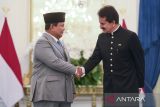 Presiden Prabowo Subianto (kiri) berjabat tangan dengan Duta Besar Pakistan untuk Indonesia Zahid Hafeez Chaudhri usai menerima surat kepercayaan di Istana Merdeka, Jakarta, Jumat (7/11/2025). Presiden Prabowo Subianto menerima surat kepercayaan dari 12 duta besar negara sahabat. ANTARA FOTO/Hafidz Mubarak A/tom.