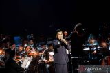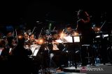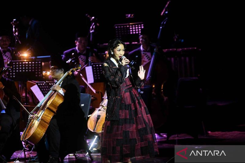 Penyanyi Aimee Saras tampil bersama Jakarta Philharmonic Orchestra pada pertunjukan orkestra yang bertajuk Perayaan Kebangsaan SATOE Indonesia di Teater Jakarta, Taman Ismail Marzuki, Sabtu (8/11/2025). Pertunjukan yang digelar dalam rangka menuju JAKARTA500 tersebut menampilkan beberapa lagu di antaranya Juwita Malam, Kopral Jono dan Pantang Mundur. ANTARA FOTO/Muhammad Adimaja/YU