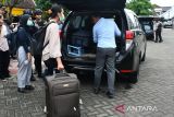 Petugas Komisi Pemberantasan Korupsi (KPK) berjalan dengan membawa koper seusai melakukan penggeledahan di Dinas Pekerjaan Umum, Perumahan dan Kawasan Permukiman (PUPKP) Kabupaten Ponorogo, Jawa Timur, Kamis (13/11/2025). Penggeledahan tersebut dilakukan pascapenetapan Bupati Ponorogo Sugiri Sancoko bersama Sekda Agus Pramono, Direktur RSUD Harjono Ponorogo Yunus Mahatma dan pihak swasta Sucipto sebagai tersangka terkait kasus dugaan suap pengurusan jabatan, suap proyek pekerjaan di RSUD Harjono serta gratifikasi di lingkupan pemkab setempat. ANTARA FOTO/Siswowidodo/tom.