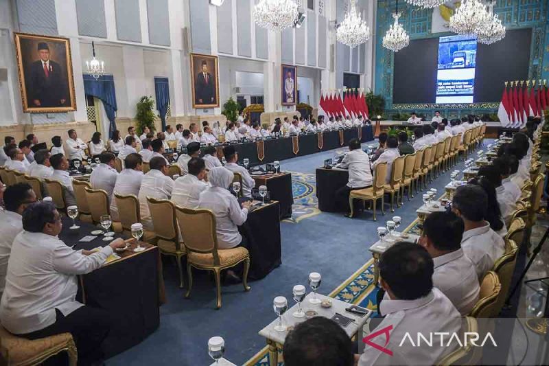 Presiden Prabowo Subianto (tengah) didampingi Wakil Presiden Gibran Rakabuming Raka (kanan) memimpin Sidang Kabinet Paripurna di Istana Negara, Jakarta, Senin (15/12/2025). Sidang kabinet paripurna tersebut membahas penanganan bencana serta kesiapan pemerintah menghadapi periode libur akhir tahun. ANTARA FOTO/Galih Pradipta/rwa.