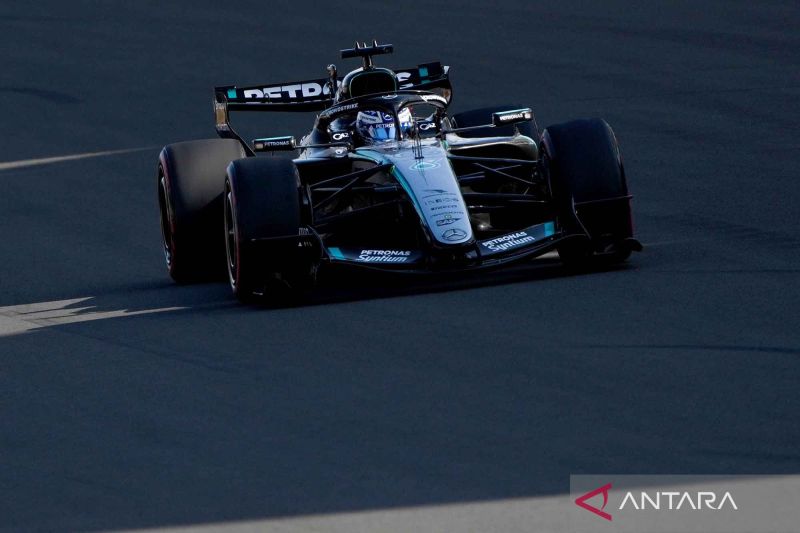 Pembalap asal Inggris dari tim Mercedes AMG Petronal George Russell memacu mobil balapnya dalam Kualifikasi Grand Prix Formula 1 China di Sirkuit Internasional Shanghai di Shanghai, China, Sabtu (14/3/2026). Pembalap dari tim Mercedes AMG Petronas Kimi Antonelli akhirnya berhasil meraih Pole Position dengan catatan waktu 1 menit 32,064 detik. ANTARA FOTO/Xinhua/Chen Haoming/nym.